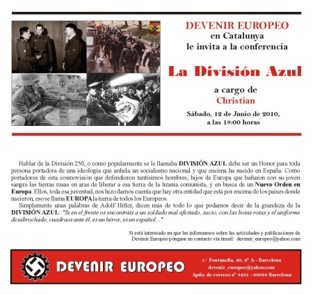 Hablar de la División 250, o como popularmente se le llamaba División Azul debe ser un honor para toda persona portadora de una ideología que anhela un socialismo nacional y que encima ha nacido en España. Como portadores de esta cosmovisión que defendieron tantísimos hombres, hijos de Europa que bañaron con su joven sangre las tierras rusas en aras de liberar a esa tierra de la tiranía comunista, y en busca de un Nuevo Orden en Europa. Ellos, toda esa juventud, nos hizo darnos cuenta que hay otra entidad que está por encima de los países donde nacieron, eso se llama Europa la tierra de todos los Europeos.