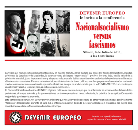 Esta conferencia de DEVENIR EUROPEO versará sobre qué nos une y qué separa de otras visiones llamadas genéricamente “fascistas” desarrolladas durante el siglo XX, e intentará mostrar, dejando de estar anclados en el pasado, las claves para constituir un verdadero Movimiento Popular en Europa.