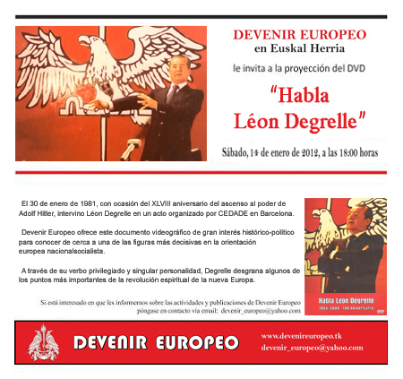 El 30 de enero de 1981, con ocasión del XLVIII aniversario del ascenso al poder de Adolf Hitler, intervino Léon Degrelle en un acto organizado por CEDADE en Barcelona.