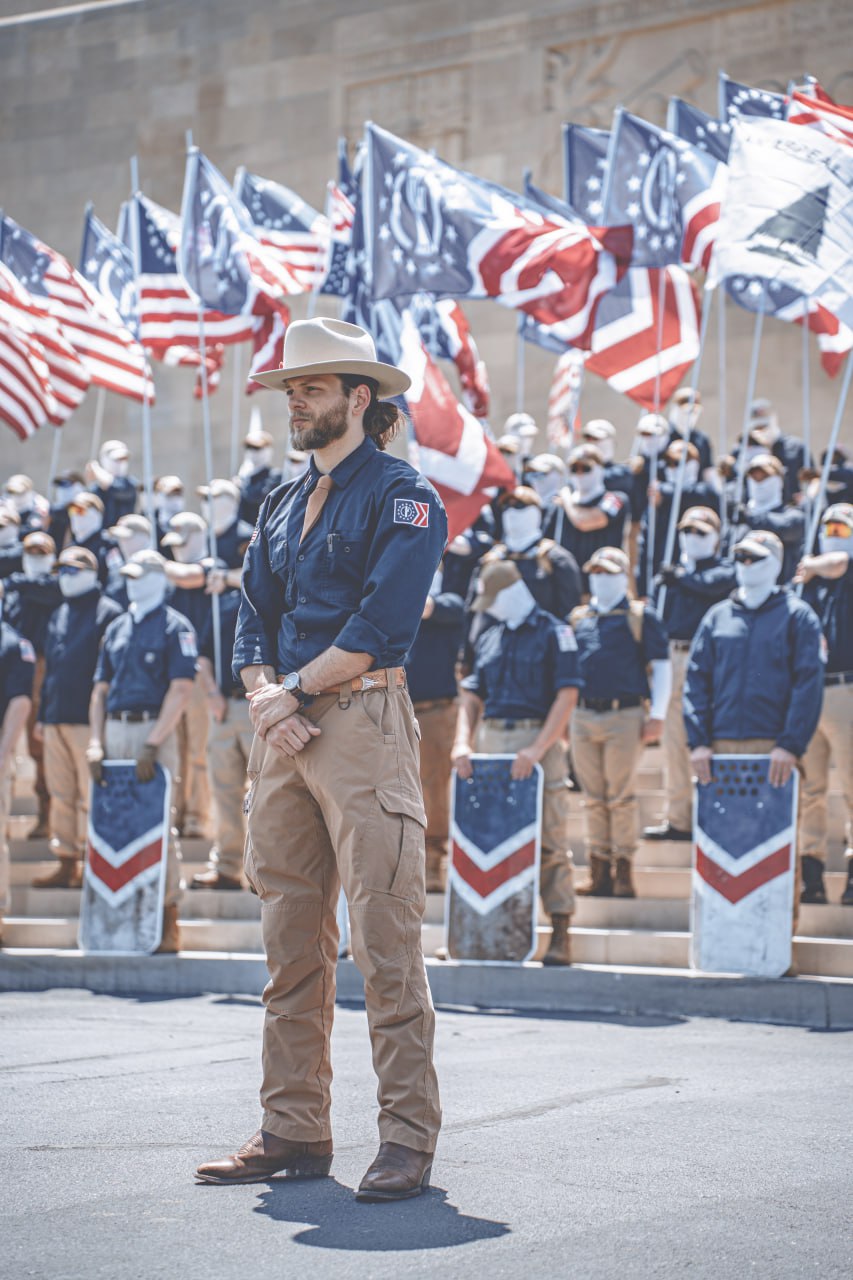 «Lucharon por una nación orgullosa de su herencia, que no se avergonzaba de decir que Estados Unidos fue construido por y para la raza europea, que no temía decir que tenemos una cultura profundamente arraigada en las tradiciones anglosajonas de nuestros antepasados. […] Sin embargo, a medida que los estadounidenses pierden contacto con su identidad, se aíslan e ignoran la guerra que se libra contra ellos, las comunidades bajo nuestra bandera se fortalecen. Estamos construyendo una nación dentro de una nación, una nación que se convertirá en la nación, y comienza con las virtudes elementales del coraje y el sacrificio. Las mismas que hoy recordamos aquí.» PF