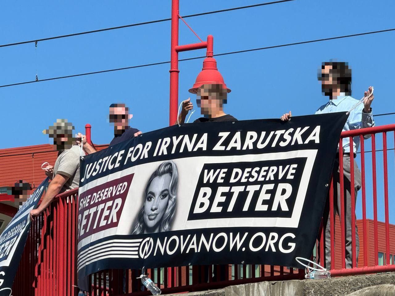 Activistas de la organización estadounidense NOVA se manifestaron en Charlotte, Carolina del Norte (EEUU), para informar y denunciar el brutal asesinato, motivado por el odio racial, de la refugiada ucraniana Iryna Zarutska.