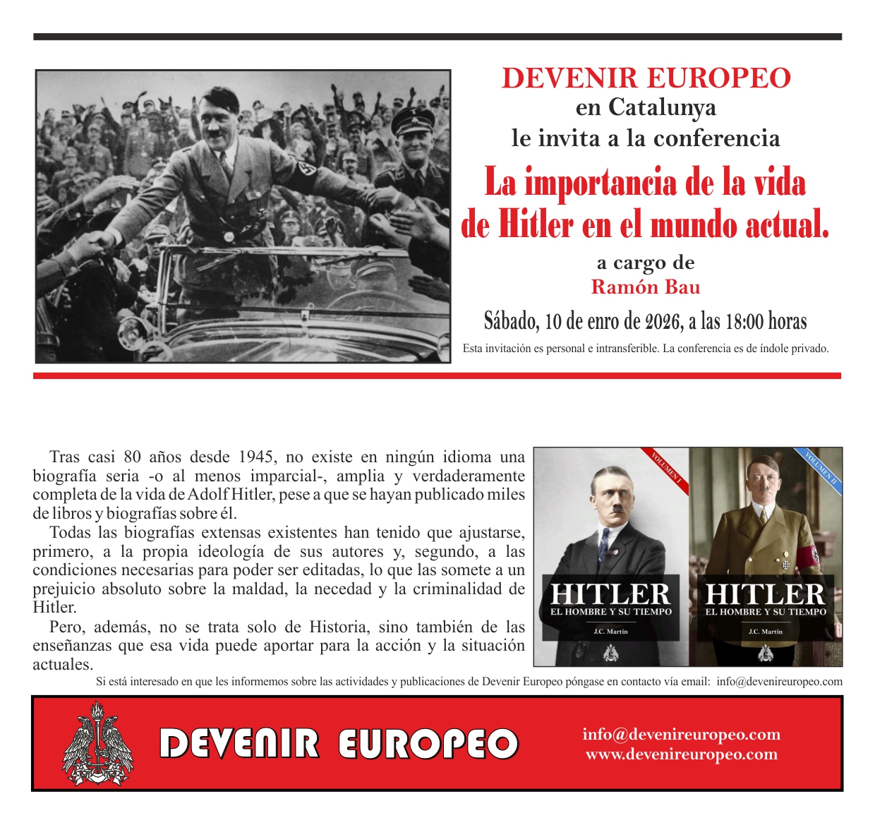 Devenir Europeo Barcelona organiza la conferencia: “La importancia de la vida de Hitler en el mundo actual” a cargo de Ramón Bau